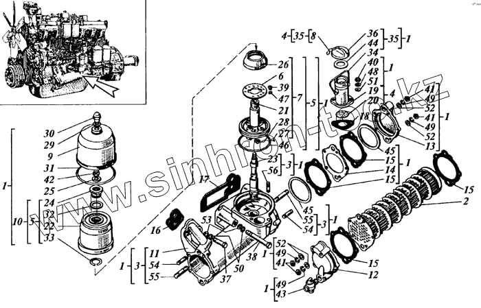 Каталог запасных частей к технике: РСМ Дон 1500Б. Теплообменник водомасляный с центрифугой