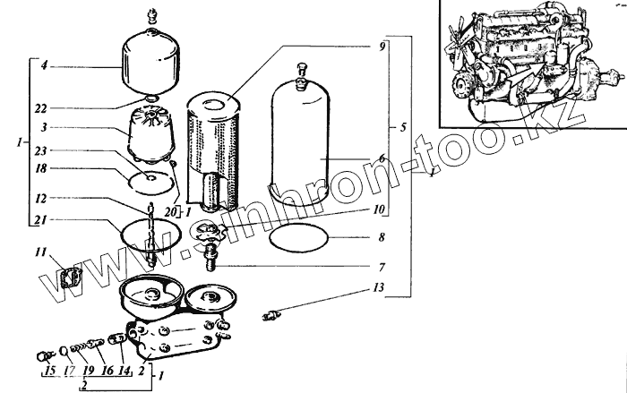 Каталог запасных частей к технике: РСМ Дон 1500Б. Центрифуга с разборным масляным фильтром