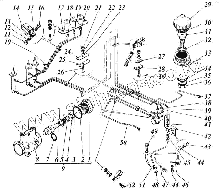 Каталог запасных частей к технике: РСМ Дон 1500Б. Установка трубопроводов управления моста ведущих колес