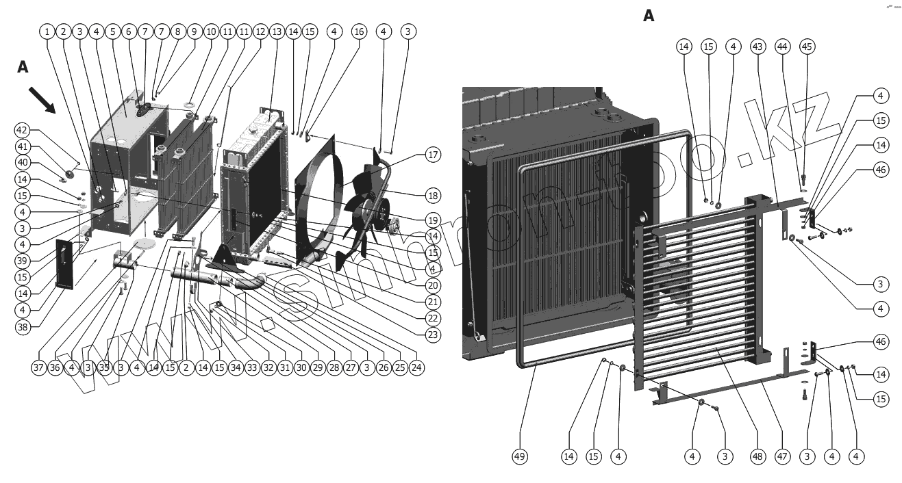 Каталог запасных частей к технике: РСМ Энергосредство ЭС-1. Блок радиаторов