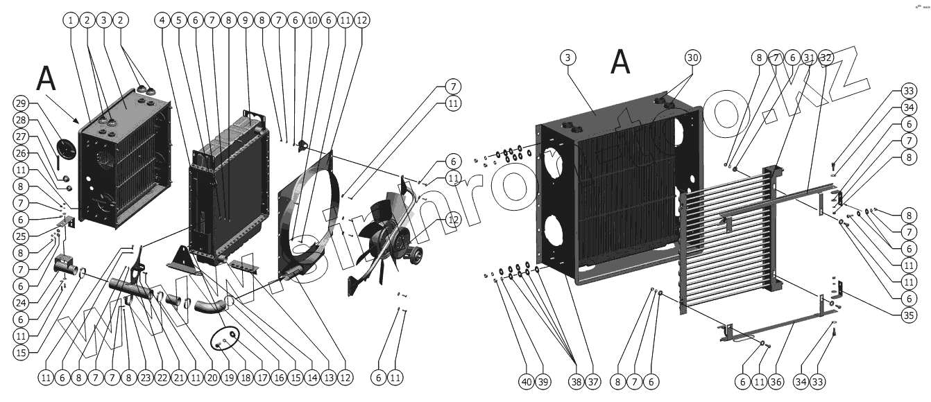 Каталог запасных частей к технике: РСМ Энергосредство ЭС-1. Блок радиаторов