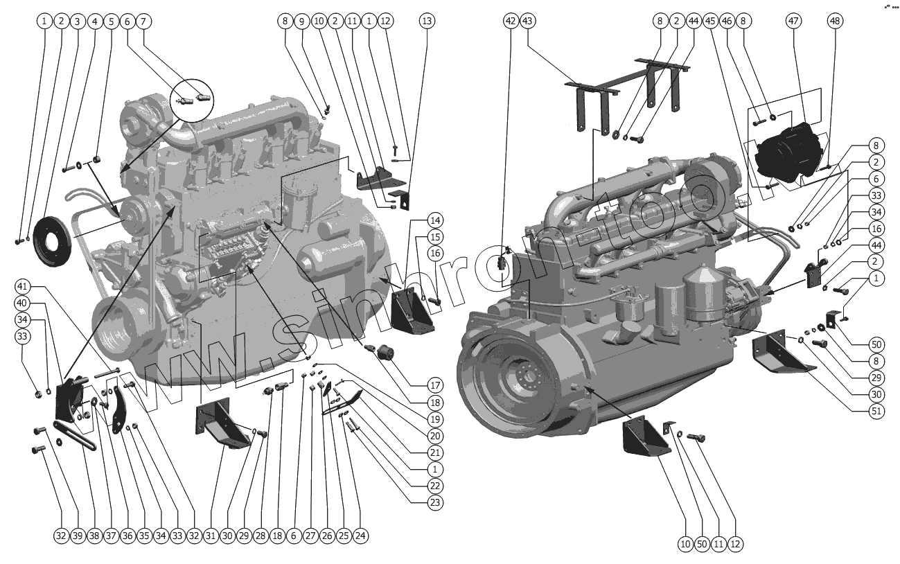 Каталог запасных частей к технике: РСМ Энергосредство ЭС-1. Кронштейны установки моторной