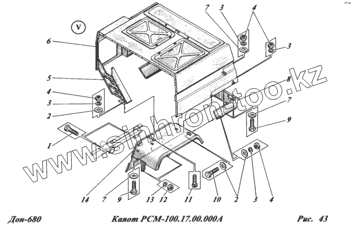 Каталог запасных частей к технике: РСМ-100 (Дон-680). Капот РСМ-100.17.00.000А