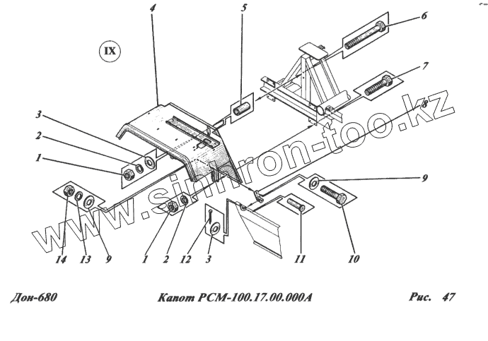 Каталог запасных частей к технике: РСМ-100 (Дон-680). Капот РСМ-100.17.00.000А
