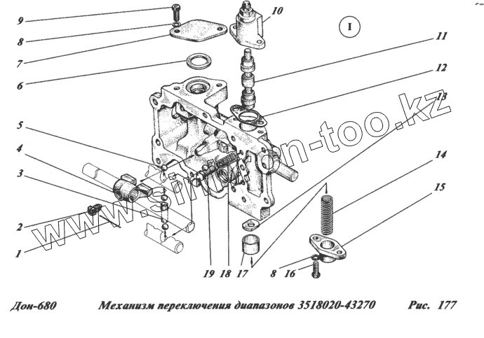 Каталог запасных частей к технике: РСМ-100 (Дон-680). Механизм переключения диапазонов 3518020-43270
