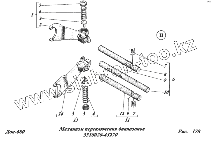Каталог запасных частей к технике: РСМ-100 (Дон-680). Механизм переключения диапазонов 3518020-43270