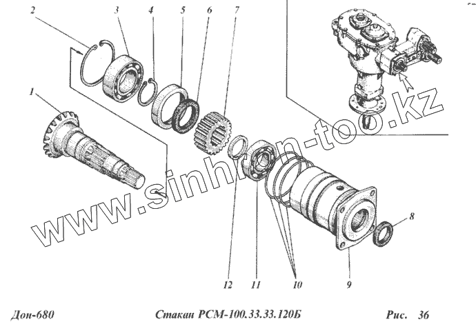 Каталог запасных частей к технике: РСМ-100 (Дон-680). Стакан РСМ-100.33.33.120Б