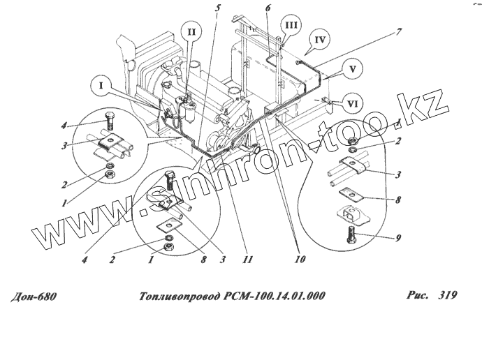 Каталог запасных частей к технике: РСМ-100 (Дон-680). Топливопровод РСМ-100.14.01.000
