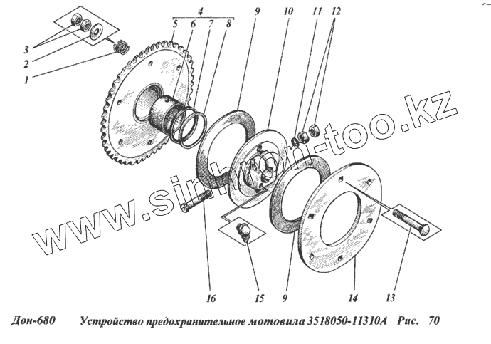 Каталог запасных частей к технике: РСМ-100 (Дон-680). Устройство предохранительное мотовила 3518050-11310А