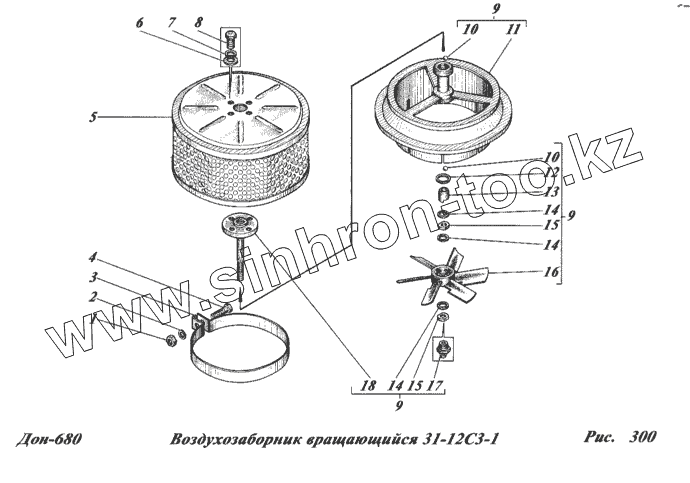 Каталог запасных частей к технике: РСМ-100 (Дон-680). Воздухозаборник вращающийся 31-12С3-1