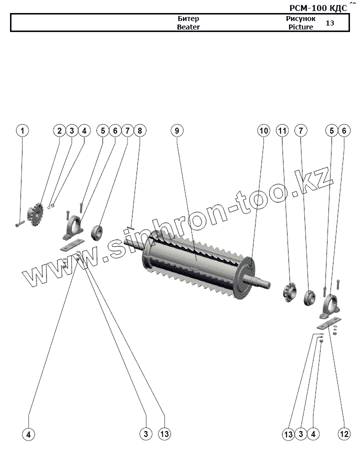 Каталог запасных частей к технике: РСМ-100 (Дон-680М). Битер