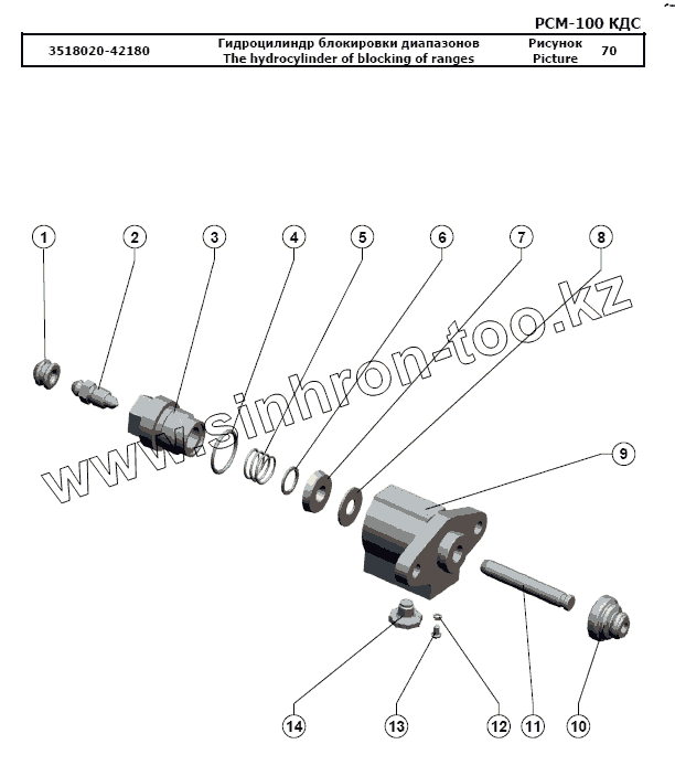 Каталог запасных частей к технике: РСМ-100 (Дон-680М). Гидроцилиндр блокировки диапазонов