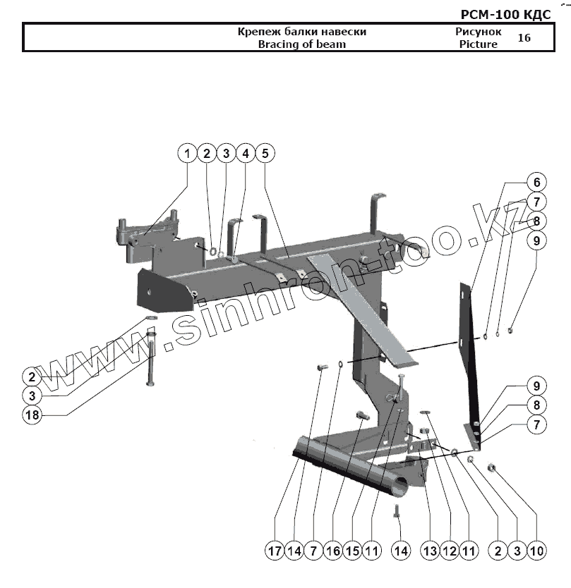 Каталог запасных частей к технике: РСМ-100 (Дон-680М). Крепеж балки навески