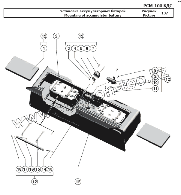 Каталог запасных частей к технике: РСМ-100 (Дон-680М). Установка аккумуляторных батарей