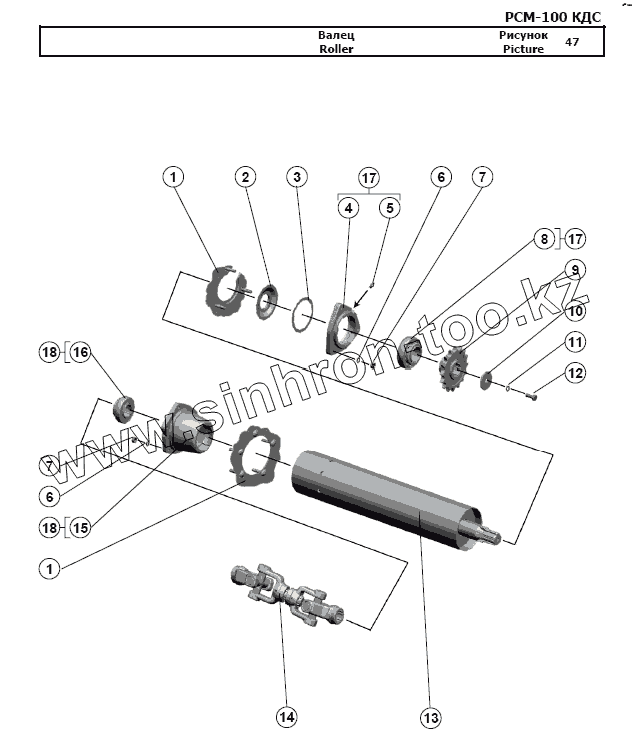 Каталог запасных частей к технике: РСМ-100 (Дон-680М). Валец