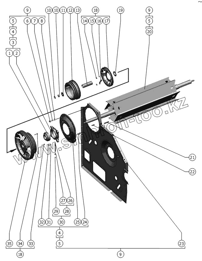 | 35 | РСМ-10.14.00.520 | Шкив для комбайна с измельчителем или РСМ-10.14.00.109 |
