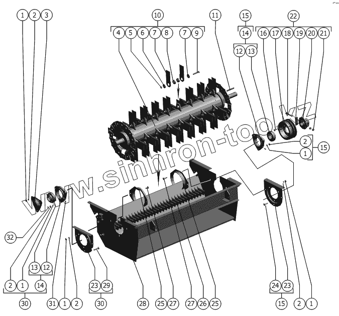 Каталог запасных частей к технике: РСМ-101 "Вектор" (вариант). Блок измельчителя
