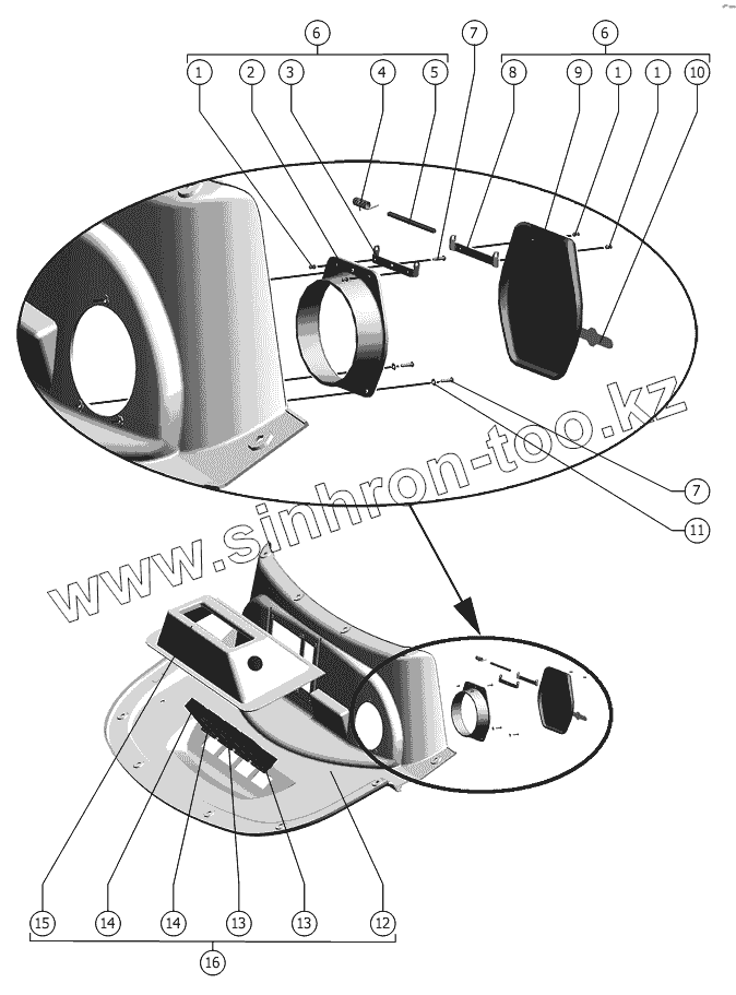 Каталог запасных частей к технике: РСМ-101 "Вектор" (вариант). Крепление крышки охладителя