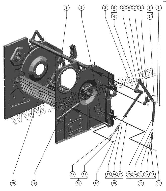 Каталог запасных частей к технике: РСМ-101 "Вектор" (вариант). Механизм подъема подбарабанья