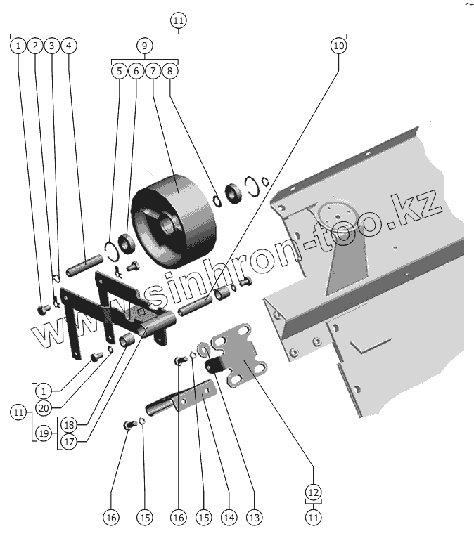 Каталог запасных частей к технике: РСМ-101 "Вектор" (вариант). Шкив натяжной