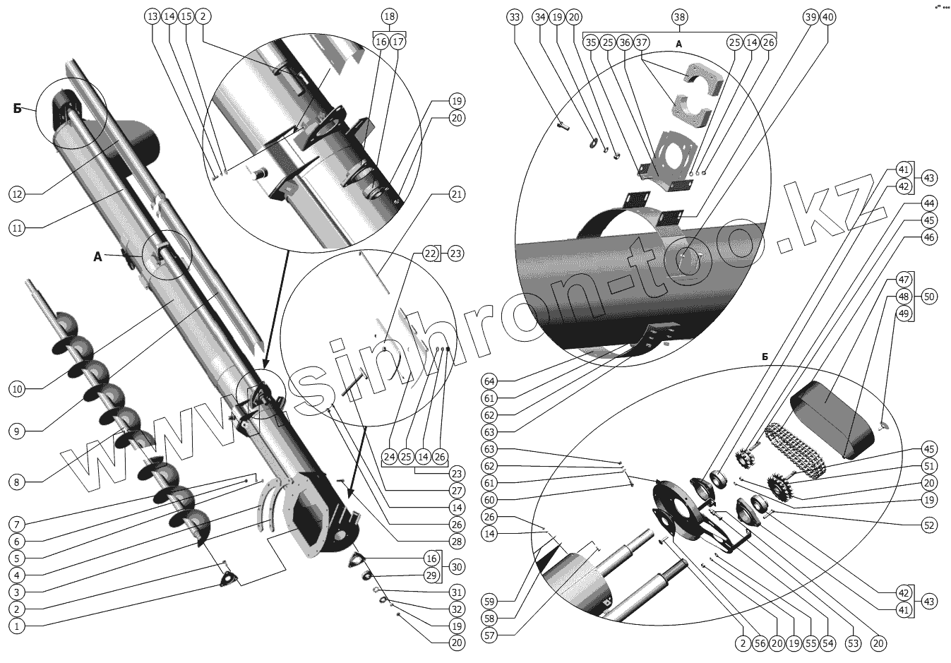 Каталог запасных частей к технике: РСМ-101 "Вектор" (вариант). Шнек выгрузной