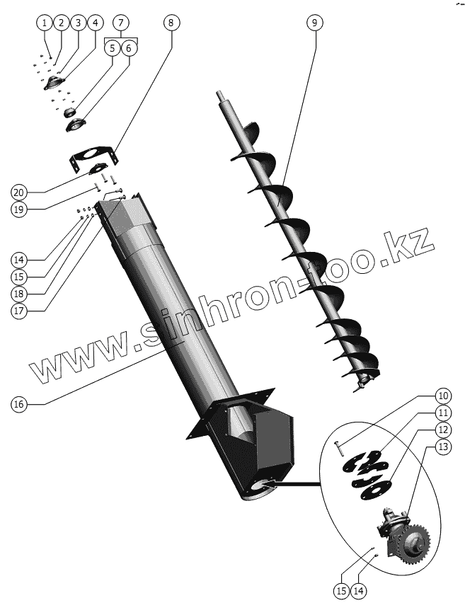Каталог запасных частей к технике: РСМ-101 "Вектор" (вариант). Шнек загрузочный