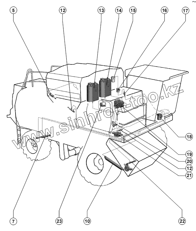 Схема деления комбайна на составные части