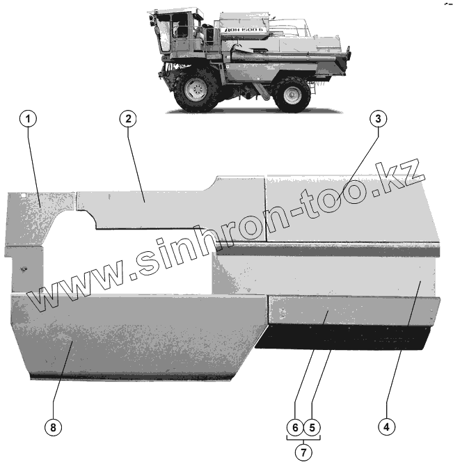 Каталог запасных частей к технике: РСМ-10Б "Дон-1500Б". Капоты. Левая сторона