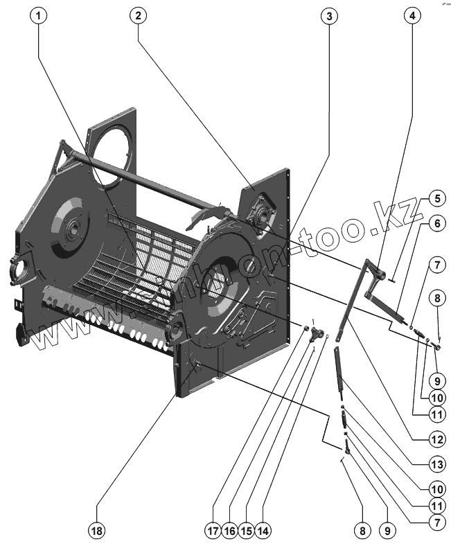 Каталог запасных частей к технике: РСМ-10Б "Дон-1500Б". Механизм подъема подбарабанья