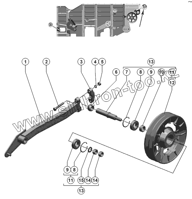 Каталог запасных частей к технике: РСМ-10Б "Дон-1500Б". Ролик натяжной