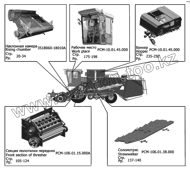 Каталог запасных частей к технике: РСМ-10Б "Дон-1500Б". Схема деления комбайна на составные части