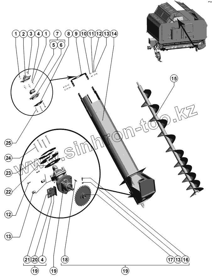 Каталог запасных частей к технике: РСМ-10Б "Дон-1500Б". Шнек зерновой наклонный