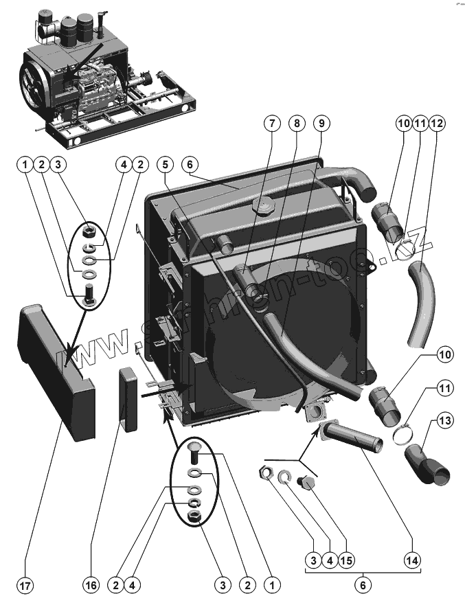 Каталог запасных частей к технике: РСМ-10Б "Дон-1500Б". Установка трубопроводов блока радиаторов