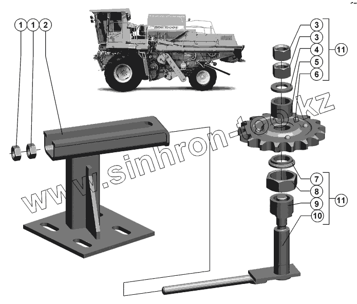 Каталог запасных частей к технике: РСМ-10Б "Дон-1500Б". Устройство натяжное привода половонабивателя
