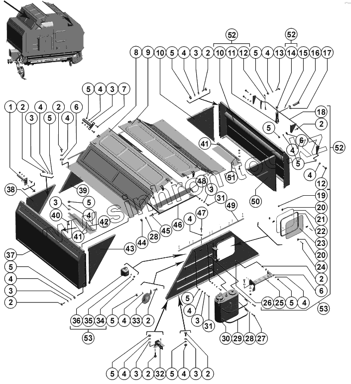 Каталог запасных частей к технике: РСМ-10Б "Дон-1500Б". Верхнее строение бункера