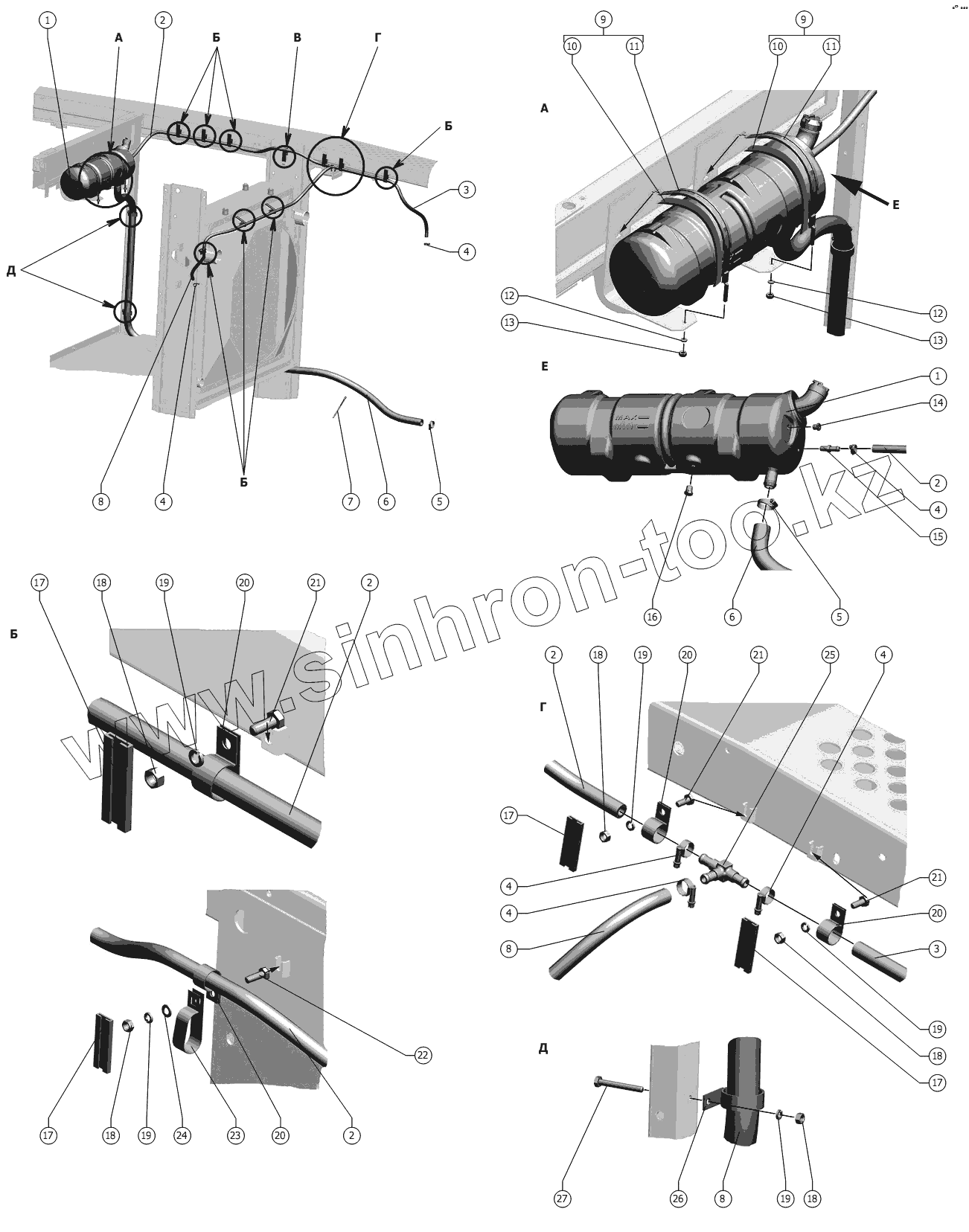 Каталог запасных частей к технике: РСМ-1401. Установка бачка расширительного