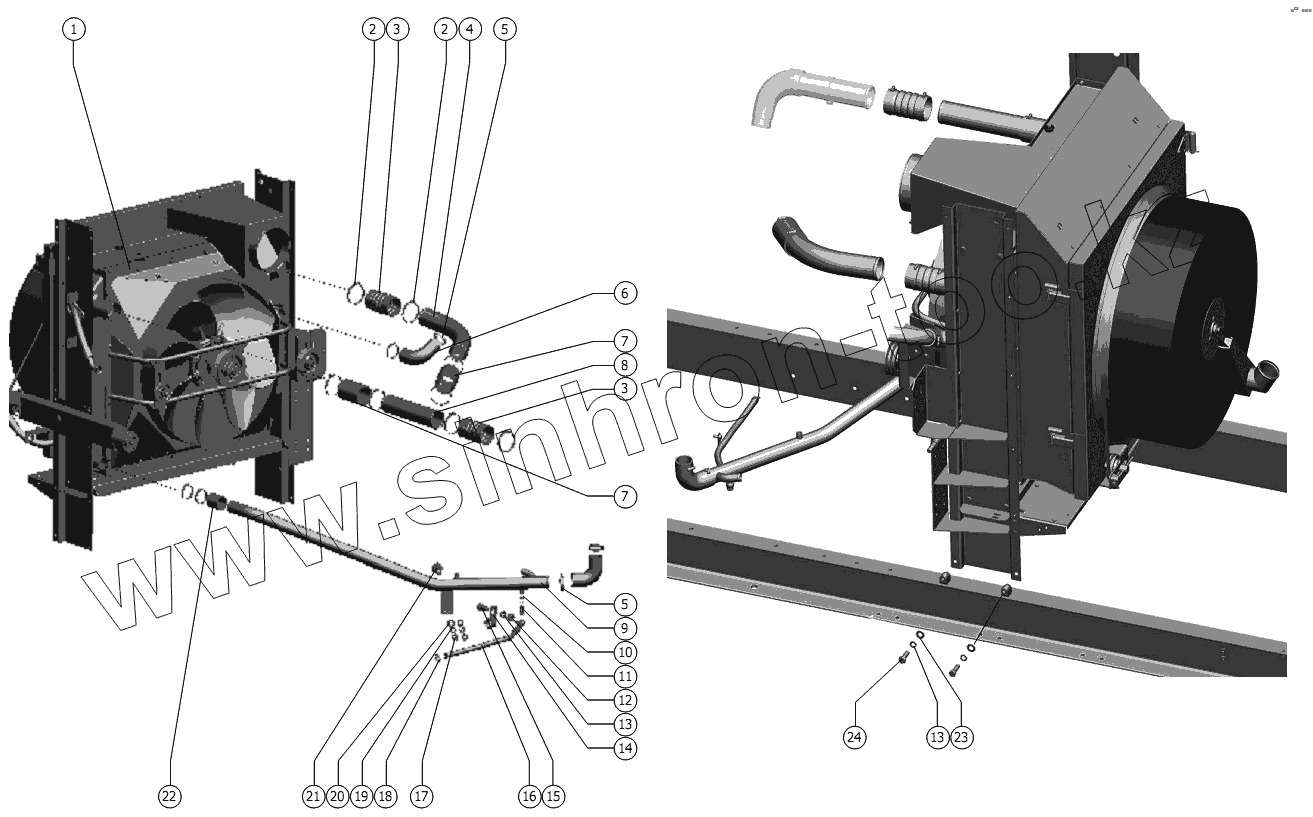 Каталог запасных частей к технике: РСМ-1401. Установка блока радиаторов
