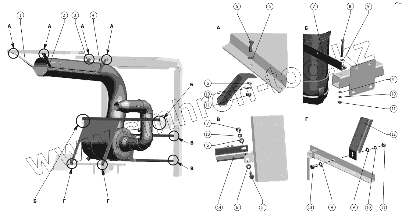 Каталог запасных частей к технике: РСМ-1401. Установка фильтра воздушного