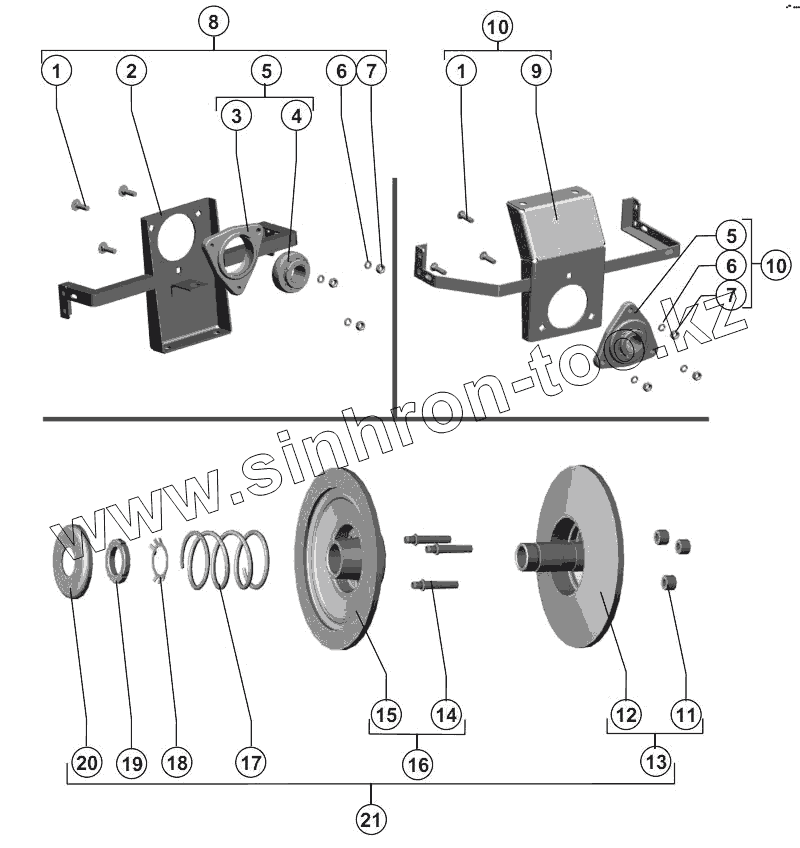 Каталог запасных частей к технике: РСМ-142 "Acros". Кронштейны и шкив вариатора ведомый