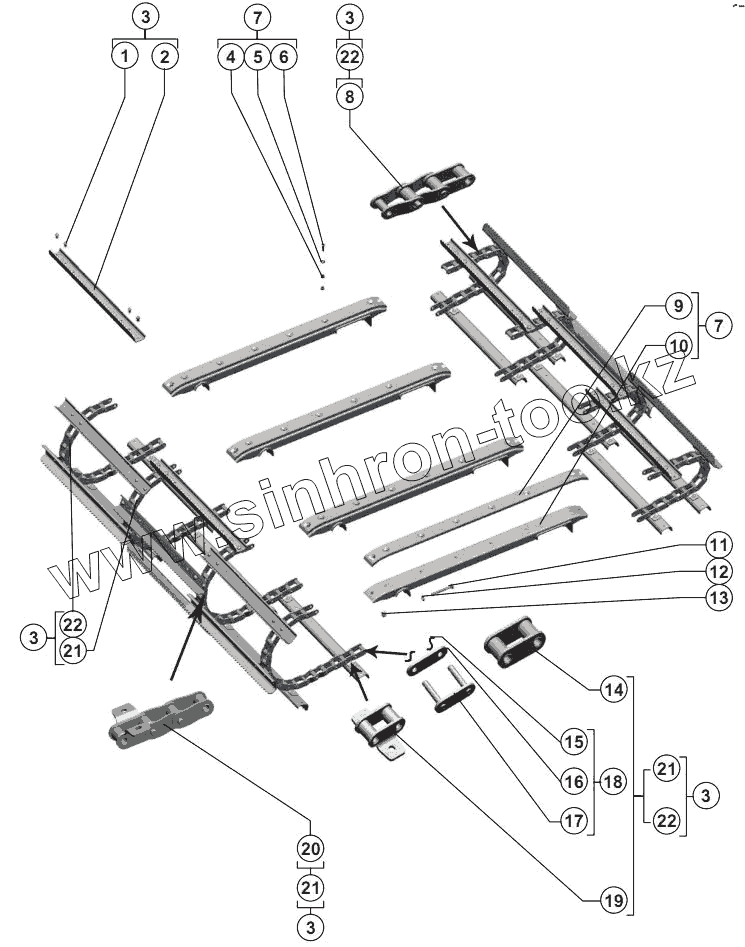 Каталог запасных частей к технике: РСМ-142 "Acros". Транспортер цепной