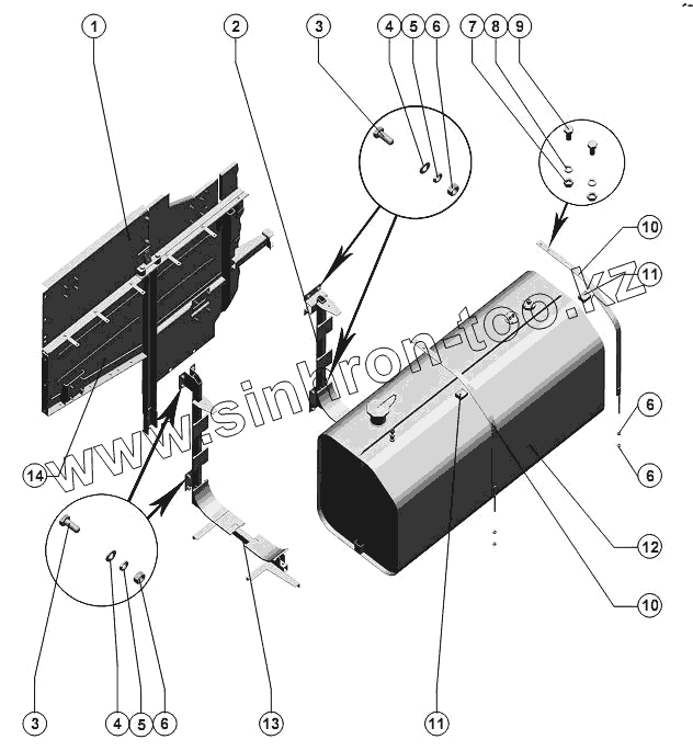 Каталог запасных частей к технике: РСМ-142 "Acros". Установка бака топливного