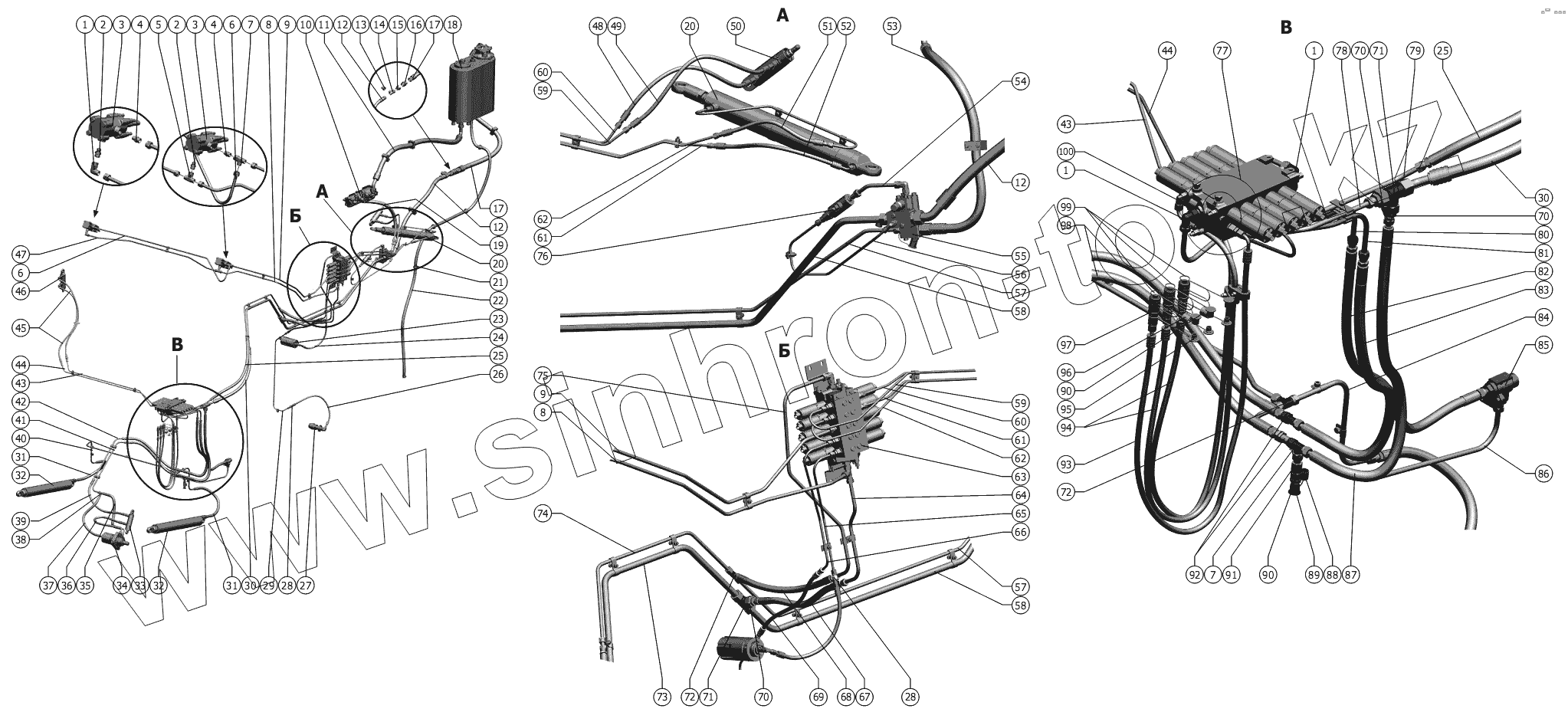 Каталог запасных частей к технике: РСМ-142 "Acros" вариант. Основная гидросистема с гидравликой фирмы Елец