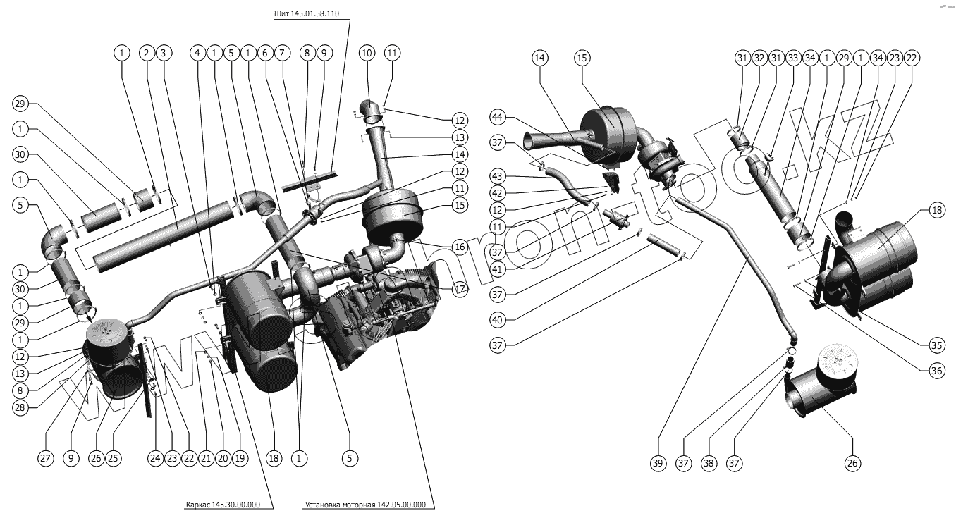 Каталог запасных частей к технике: РСМ-142 "Acros" вариант. Система питания воздухом двигателя ЯМЗ