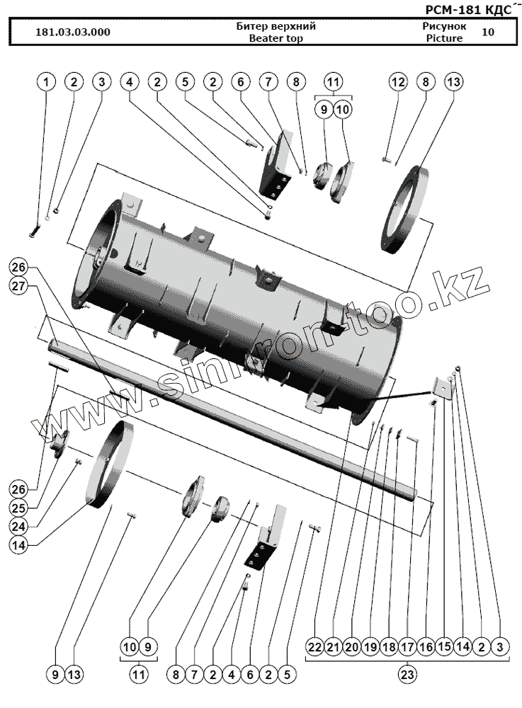 Каталог запасных частей к технике: РСМ-181 "Torum-740". Битер верхний