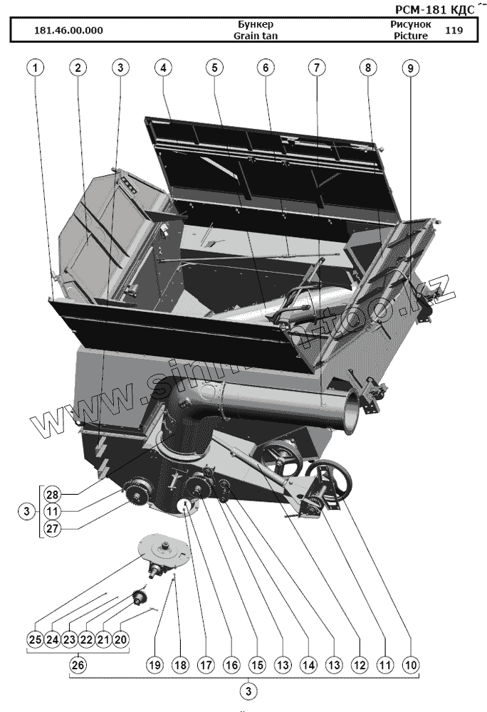 Каталог запасных частей к технике: РСМ-181 "Torum-740". Бункер