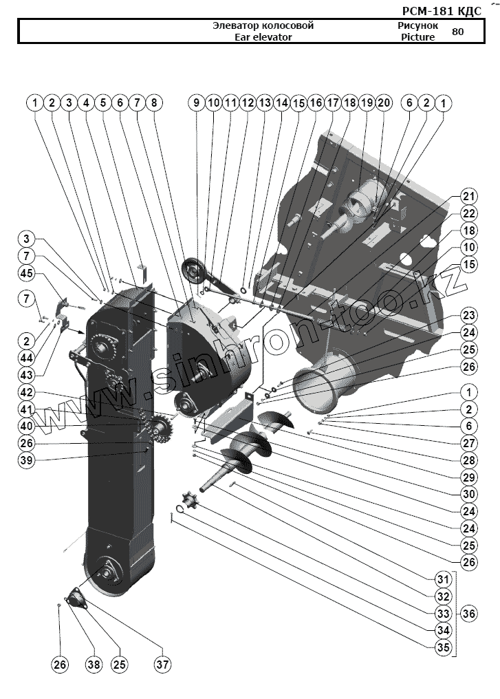 Каталог запасных частей к технике: РСМ-181 "Torum-740". Элеватор колосовой