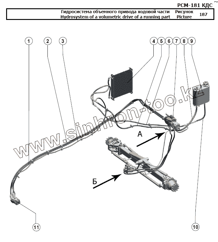 Каталог запасных частей к технике: РСМ-181 "Torum-740". Гидросистема объемного привода ходовой части