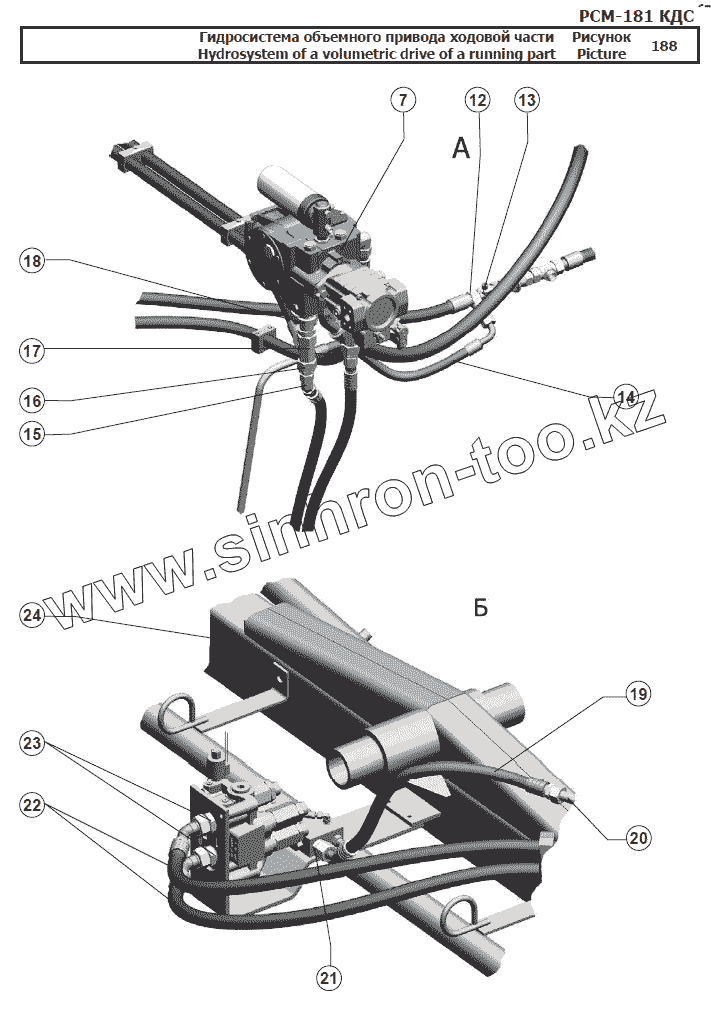 Каталог запасных частей к технике: РСМ-181 "Torum-740". Гидросистема объемного привода ходовой части
