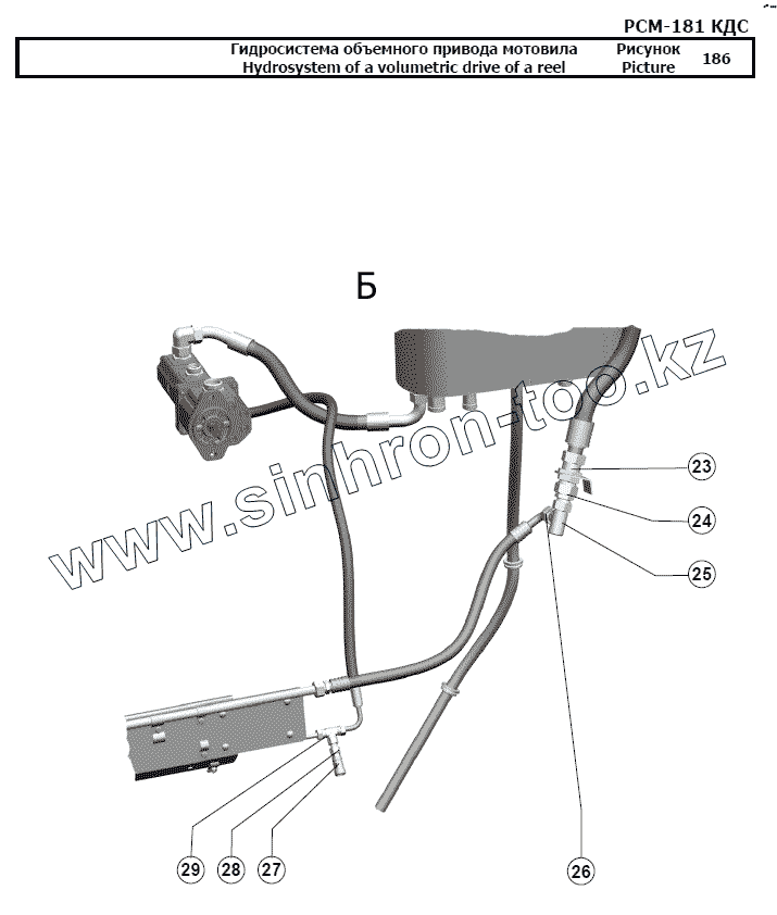 Каталог запасных частей к технике: РСМ-181 "Torum-740". Гидросистема объемного привода мотовила