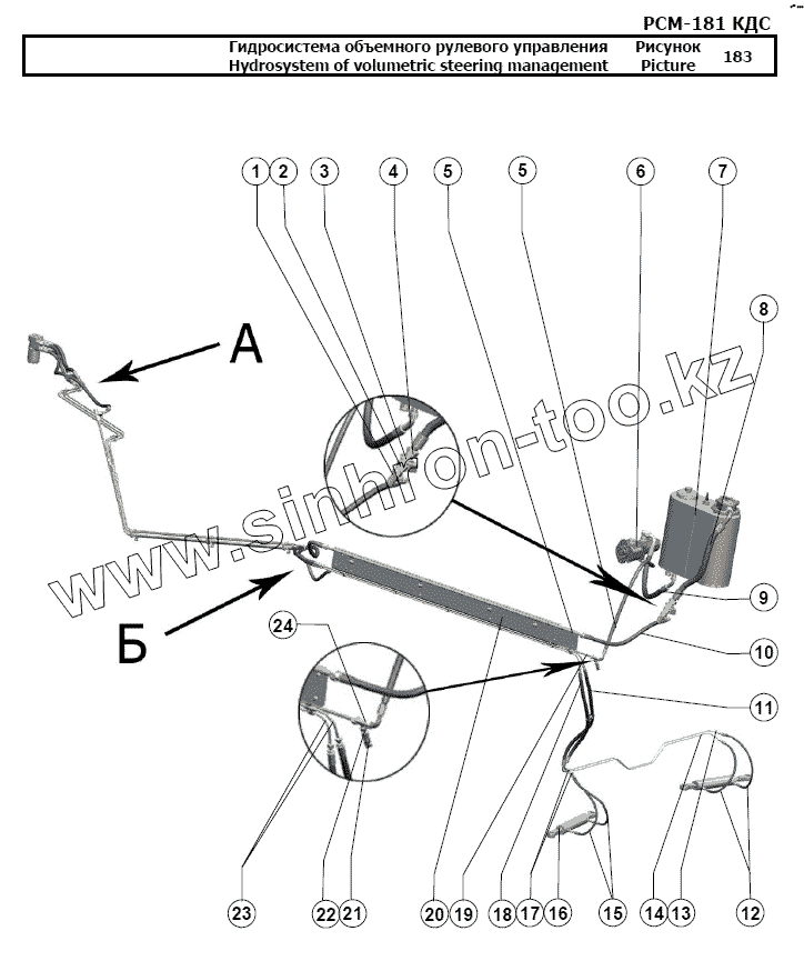 Каталог запасных частей к технике: РСМ-181 "Torum-740". Гидросистема объемного рулевого управления